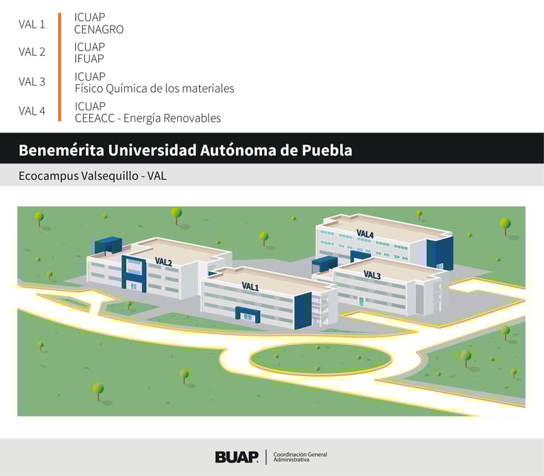 Our headquarters are located at the Eco Campus Valsequillo CU2 of the Benemérita Universidad Autónoma de Puebla, Mexico. It is a modern and sustainable academic space focused on innovation, research, and technological development. It boasts state-of-the-art infrastructure, making it an ideal environment for advanced training in science and engineering, integrating knowledge, technology, and environmental commitment.